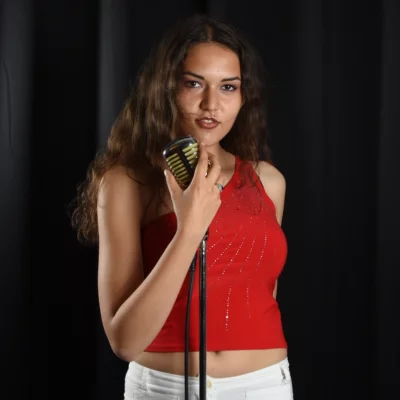 Ciao! Mi chiamo Lucrezia Mazzola e lavoro nella musica. Ho 20 anni, canto, scrivo testi in poesia e in prosa e posso suonare il pianoforte se voglio accompagnare la voce. Canto nelle sale da ballo e dove c'è posto per farlo! Amo il jazz e il gelato.