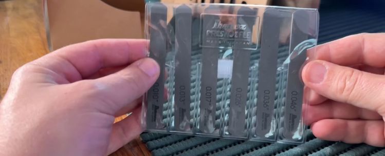 Non si può regolare un capotasto con lime generiche. È necessario un set di lime calibrate, dove ogni lima ha uno spessore preciso che corrisponde a quello di una corda. Lavorare con una lima troppo stretta creerebbe un solco che "pizzica" la corda; una troppo larga la lascerebbe muovere in modo impreciso.